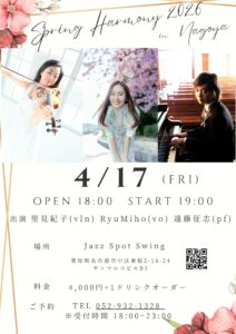 出演 里見紀子(vln) RyuMiho(vo) 遠藤征志(pf)